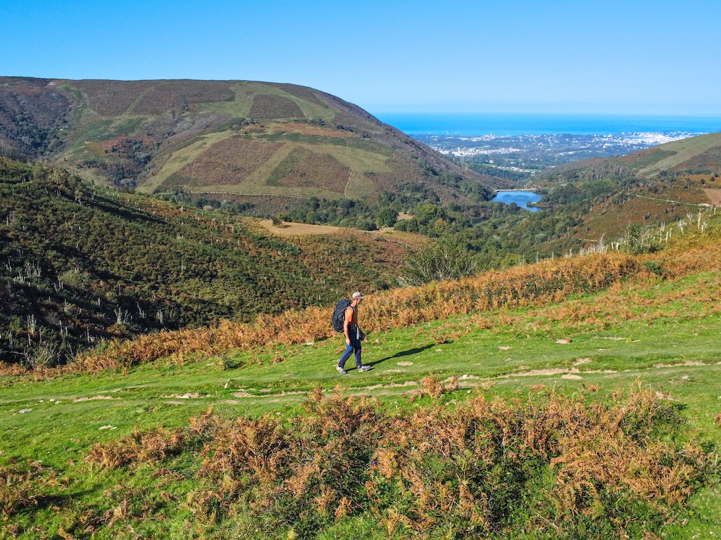 Montée progressive vers Ibardin avec la baie de Saint-Jean-de-Luz en arrière-plan