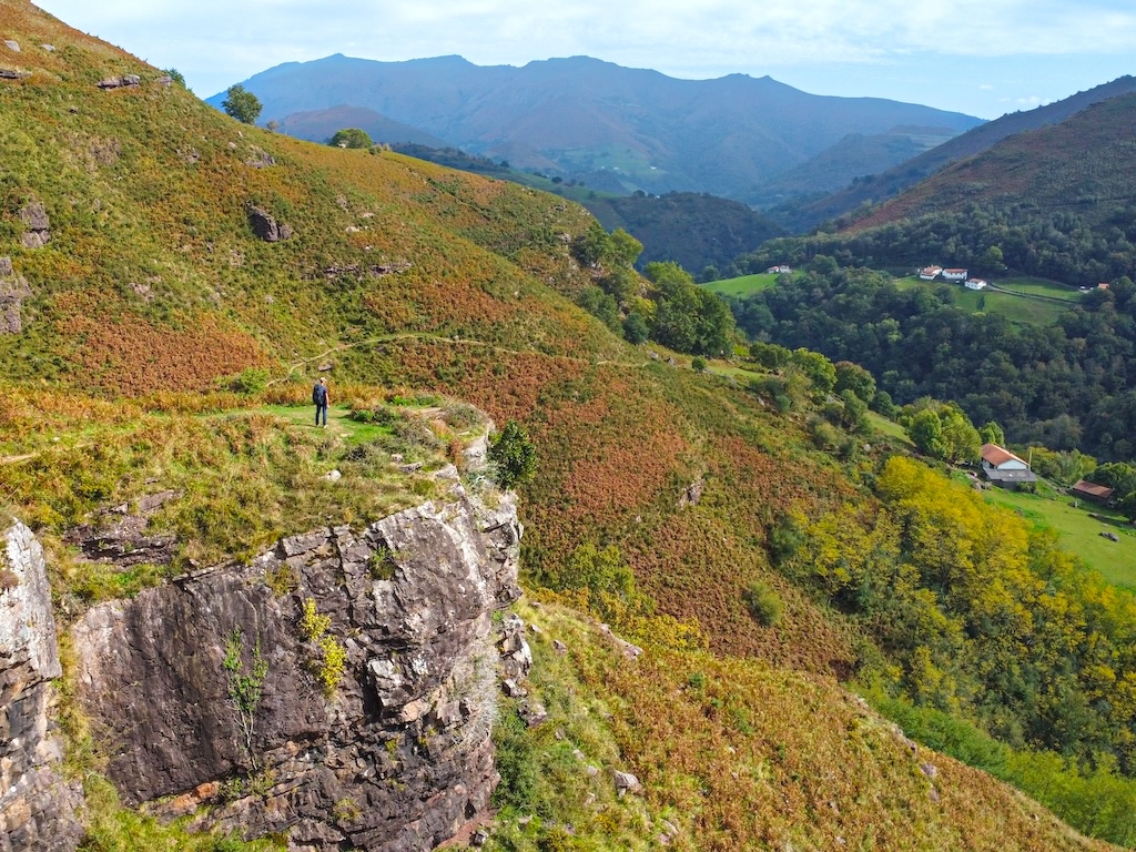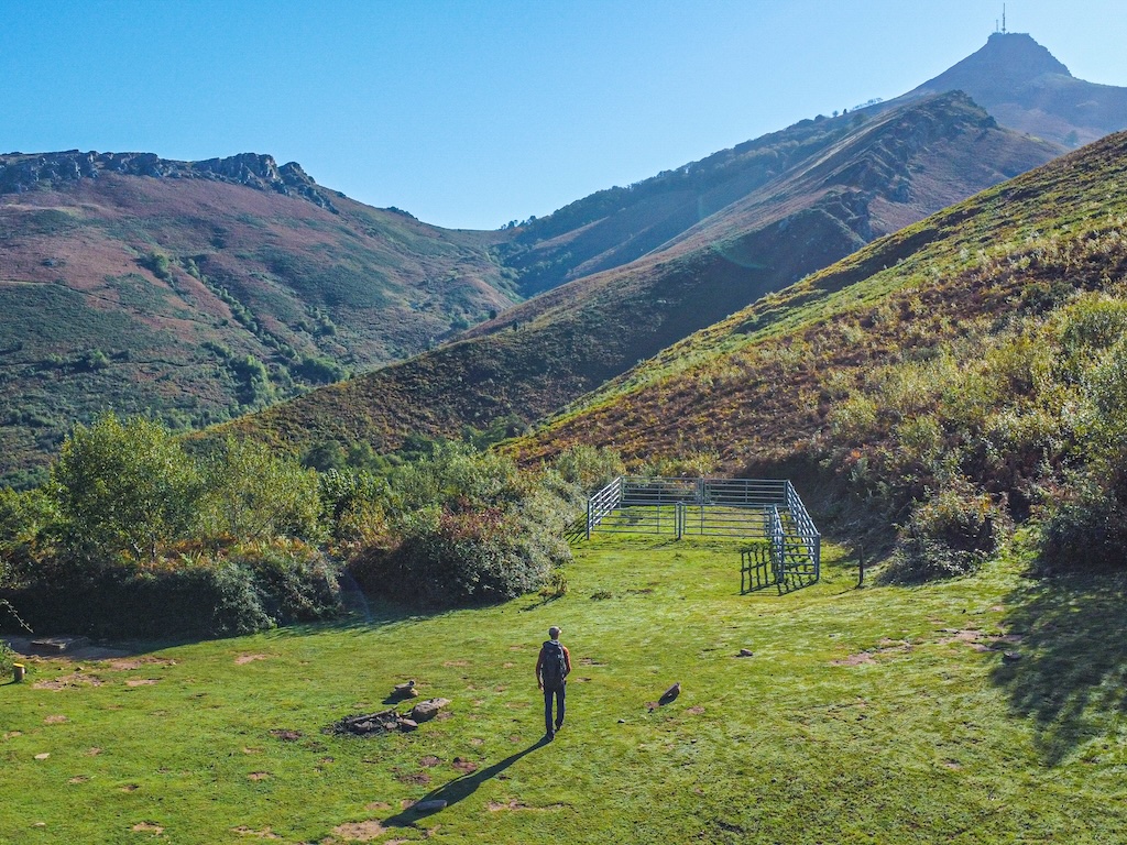 La zone de la battue : le GR10 passe dans le creux des collines, au pied de l’Aire de Leku
