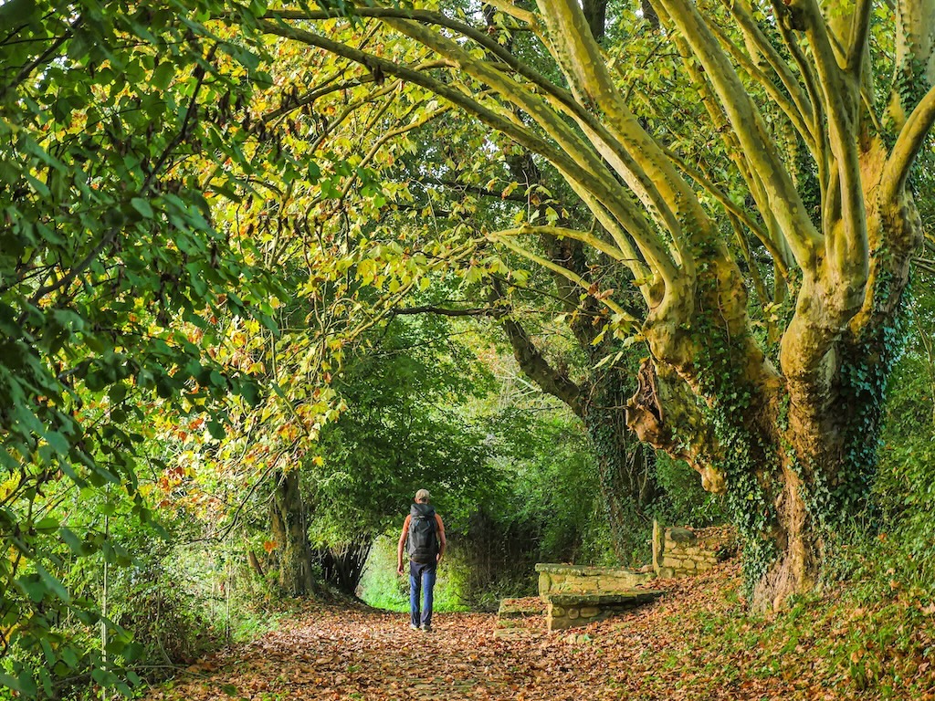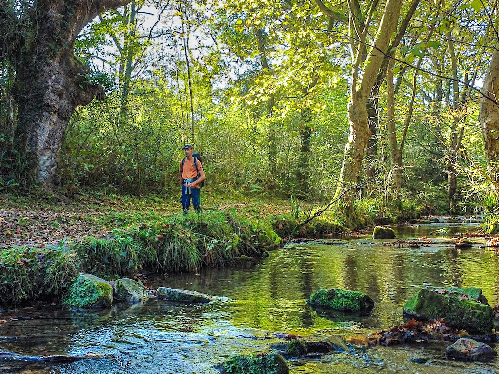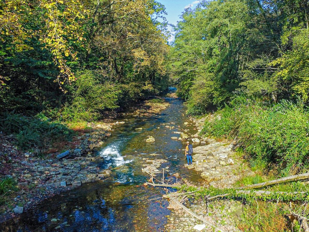 Ambiance ombragée sous les chênaies qui couvrent les flancs des premières collines du Pays Basque
