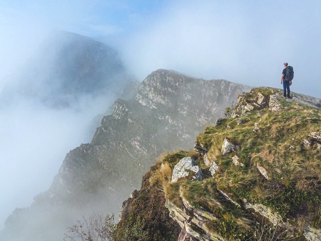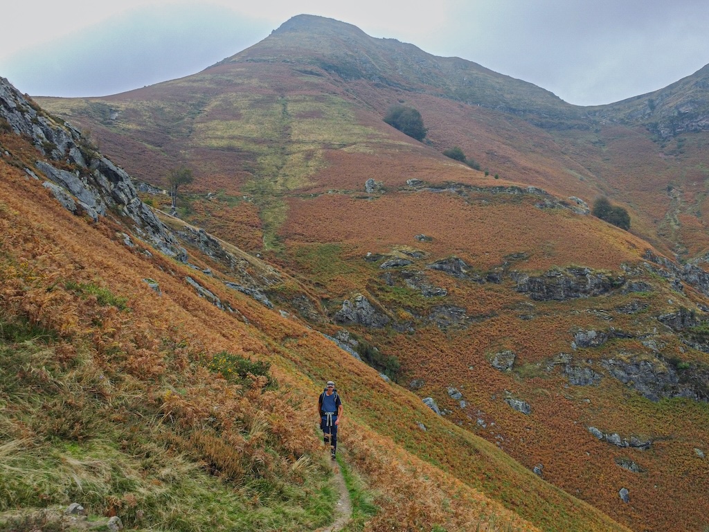 Bientôt le froid et la neige seront là, fermant les cols et les sommets jusqu’à l’été prochain. Une réalité acceptée lorsque je quitte le Munhoa par le chemin ouvert aéré ouvert sur sa large arête orientale. L’heure est désormais à la descente et au retour à la vallée. En-dessous de moi je peux clairement distinguer le serpent du chemin s’enroulant en longs lacets à travers un versant rougi par la fougère.