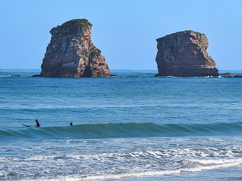 Je descends vers lui comme si je connaissais déjà le chemin. Une vieille réminiscence de celui parcouru à l’époque, à l’aube de ma première traversée des Pyrénées en 2002. J’ai hâte de revoir les Deux Jumeaux, fiers Romulus et Rémus rocheux qui, éternellement battus par le ressac de l’Atlantique, sont devenus ici une icône paysagère. Impossible de les manquer, trônant à deux pas de la Pointe Sainte-Anne, tout au bout de cette immense plage de sable fin – la plus grande de la côte Basque – qui s’étire jusqu’à l’estuaire de la Bidassoa.