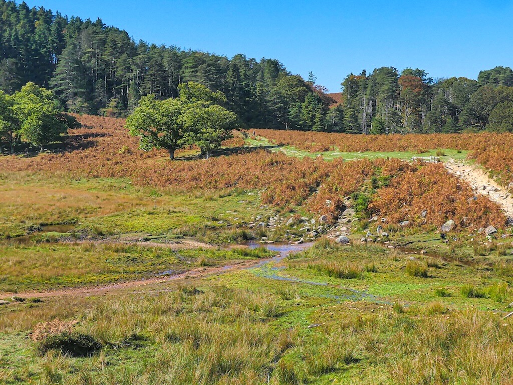 Véhicules, talkies-walkies qui crachotent, mouvements furtifs dans les versants tapissés de fougères : c’est toute une petite armée qui est en train de quadriller le vallon dans lequel je m’apprête à m’engager. Je peux distinguer les points orange des gilets disposés sur les pentes et les crêtes à intervalles réguliers tandis que les fusils parlent dans leur langue meurtrière.