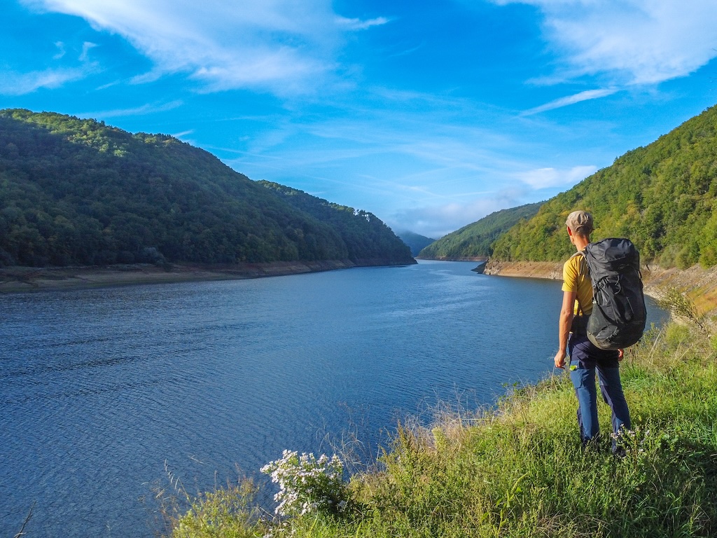 Itinérêve. Rien que le nom a déjà de quoi sérieusement faire… rêver ! De rivière et de forêts, de sentiers oubliés et d’heureuse solitude, de villages accueillants et de barrages massifs. Des rêves de Corrèze tout simplement. L’Itinérêve ne saurait cependant être restreinte à une simple itinérance pédestre. Davantage qu’une succession de balises, c’est avant tout une aventure humaine portée par la passion et l’énergie d’une association et de son créateur, Jean-Marc Chirier. D’une rive à l’autre de la Dordogne, au fil de 420km, elle fédère tout un territoire pour faire du randonneur un hôte de valeur. Derrière l’Itinérêve, il y a un chemin mais aussi des bénévoles, motivés par l’expérience qu’ils veulent offrir aux randonneurs de leur territoire de coeur. Une initiative à part pour un itinéraire atypique et attachant que j’ai testée pour Carnets de Rando en parcourant sa rive droite, de Confolent-Port-Dieu à Argentat-sur-Dordogne.