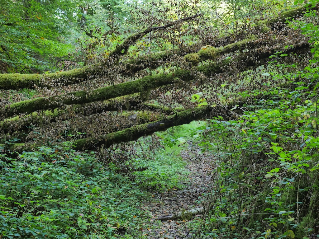 J’ai dû bûcheronner dans le sous-bois plusieurs fois à cause d’arbres en travers du chemin. Moi je trouve que c’est quand même pas super bien entretenu ce chemin.
