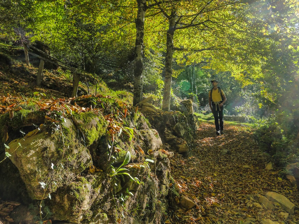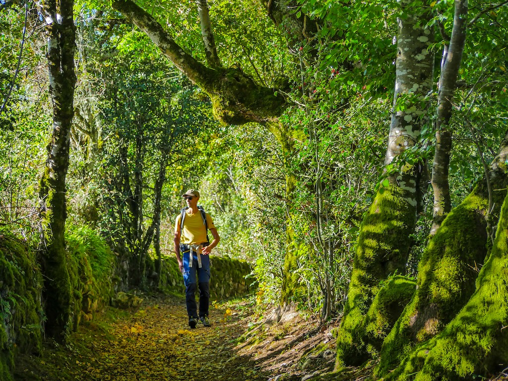 Il faut ainsi être du pays et fin connaisseur pour, tel un fin limier de l’histoire locale, savoir faire apparaître, entre les feuilles et les talus, la forme en gouttière d’un ancien bief d’irrigation. Le sentier, encore impeccablement caladé, témoigne quant à lui de l’usage intensif de ces voies forestières par des milliers de pas avant les miens.