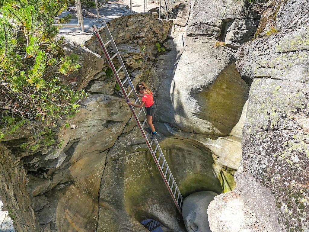 Judicieusement valorisées et reliées entre elles par un astucieux système de passerelles et d’escaliers en métal, les fameuses marmites dévoilent leurs profondeurs aux regards du public. Des panneaux explicatifs renseignent sur la longue mécanique de leur origine, forées à la patience par l’action érosive de l’eau sous-glaciaire.