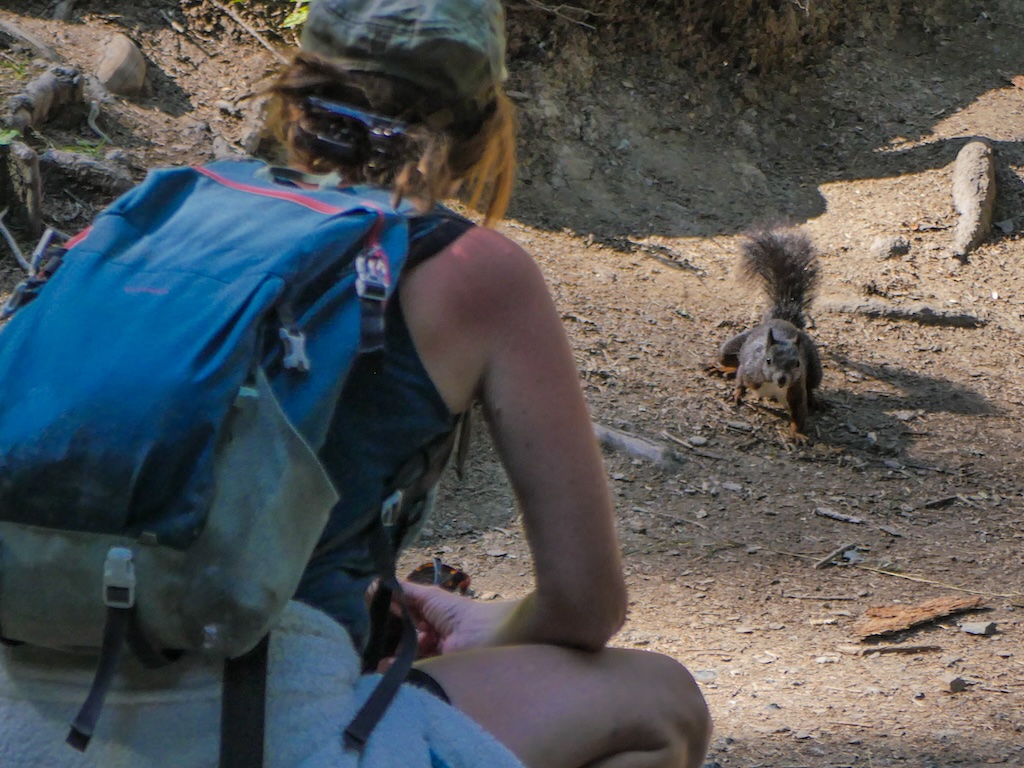 Les écureuils, on les a ensuite entendus avant de vraiment les apercevoir. J’avoue m’être un peu reposé sur d’autres visiteurs plus attentifs pour les repérer sans effort. Je l’attendais roux, comme à la maison en Provence, mais voici qu’ici il est noir ! Une variation de pelage de l’écureuil gris, en fait.