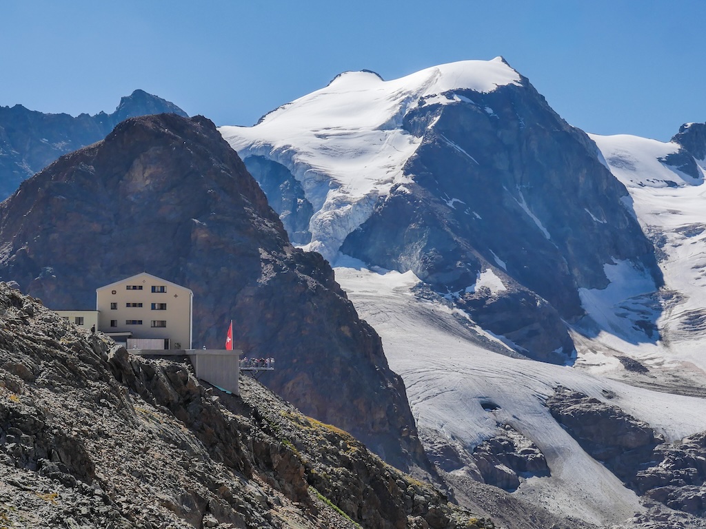 Sur la route quittant le Val Poschiavo et menant à Sant-Moritz, après avoir dépassé le col de la Bernina, impossible de manquer le complexe abritant la gare de départ du télécabine de la Diavolezza. Un ticket vers la haute montagne pour passer, en quelques minutes, de 2000 à 3000m d’altitude.