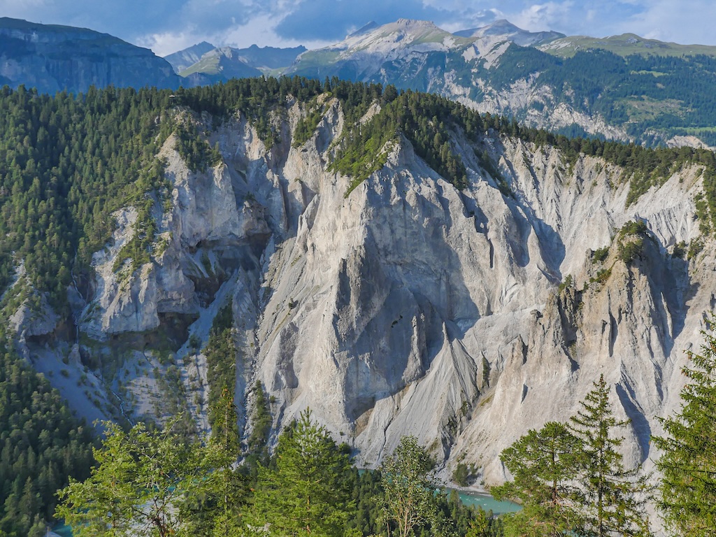 Dans ce jardin particulier se dévoilent des marmites de géant et des gorges patiemment érodées par le temps pour raconter l’histoire des glaciers et de l’eau qui, tel le burin et le ciseau dans les mains d’un artiste, ont modelé le paysage actuel des Grisons.