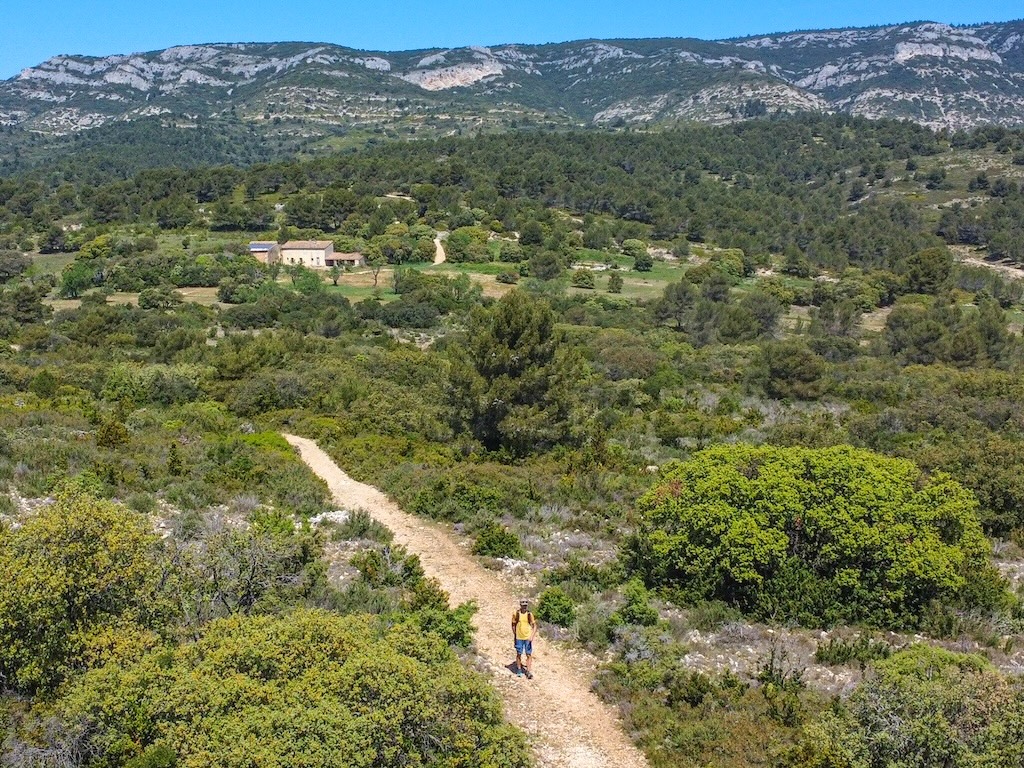 C’est un retour que j’imaginais faire détendu et le pas léger, convaincu d’avoir laissé toute difficulté derrière moi. Une erreur grossière. Après avoir passé la Tuilière, le chemin vers Mérindol n’en a pas terminé avec le dénivelé, repartant de plus bel pour grimper sportivement parmi les pins d’Alep et les chênes !